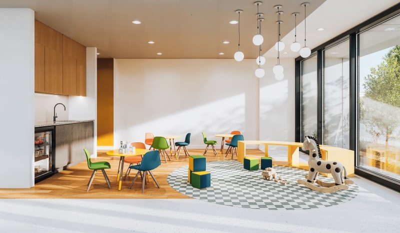 Fully-equipped gym; yoga room; kids’ center; rooftop pool and terrace; communal kitchen/indoor lounge