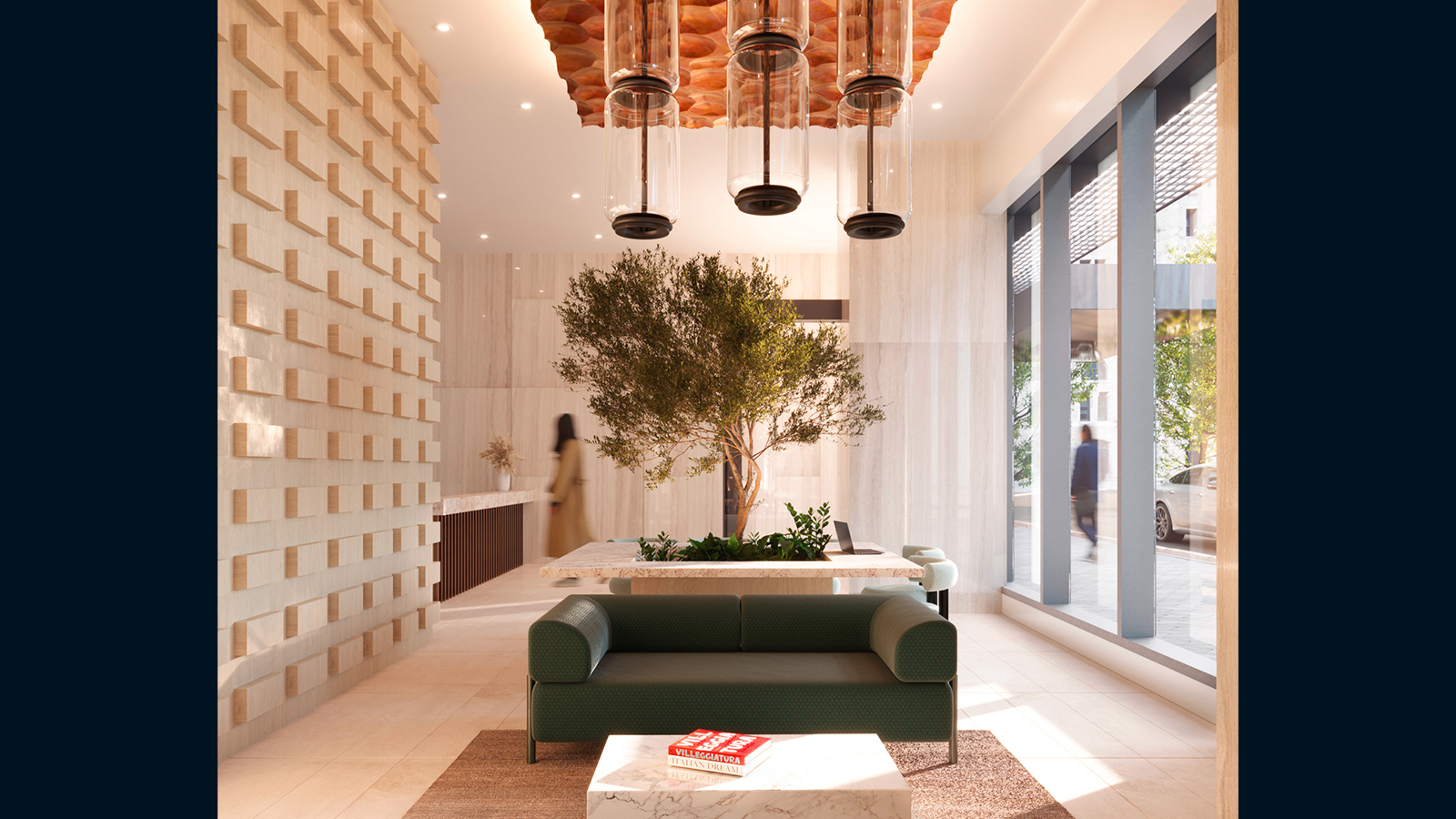 - DROP-OFF AREA AND MODERN LOBBY: with an espresso bar, smart vending machines and secure mailroom