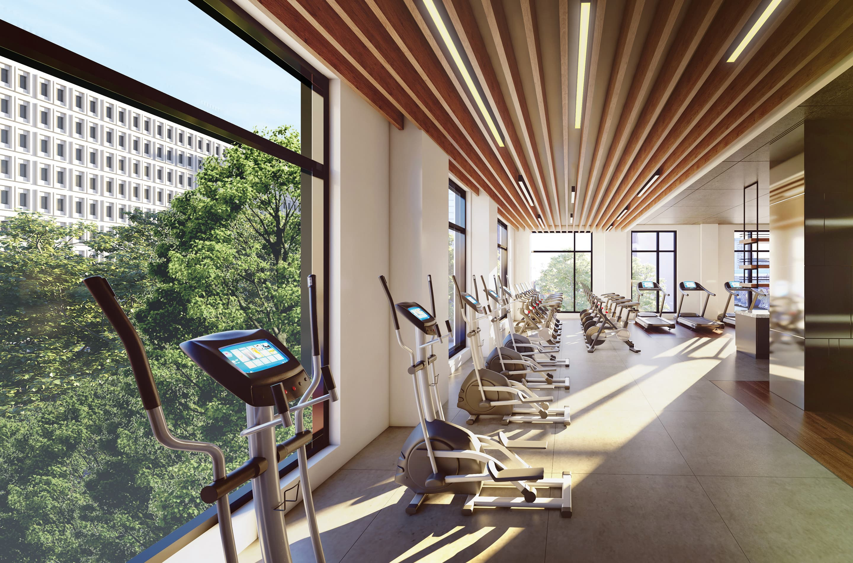 Residents can enjoy an indoor pool, spa, fitness center, coworking spaces, a yoga studio and friendly lounges.
