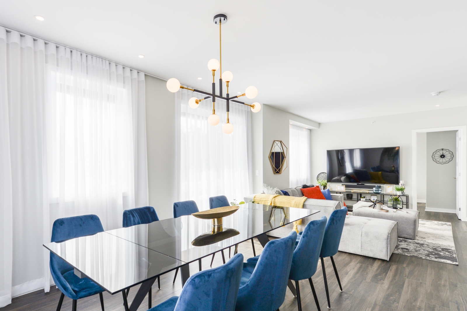 SkyBlü Condos is a condominium project located within Cité Mirabel that offers more than thirty different unit models from 1 to 3 bedrooms ranging in sizes from 740 to over 2,700 sq.ft. One of the rare projects on the North Shore with a reinforced concrete structure.